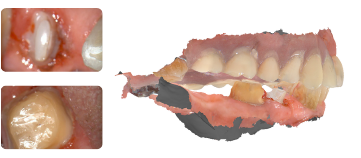 Uso del escáner intraoral para obtener una impresión óptica precisa de los preparados y las zonas edéntulas.