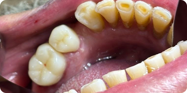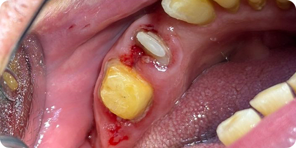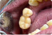 Paciente masculino de 72 años con una anatomía compleja debido a la ausencia de varias piezas dentales posteriores. El paciente presentaba coronas metálicas en los órganos dentarios 45 y 46 con filtración marginal, caries recidivante y una gingivitis localizada severa, producto del desajuste crónico de las restauraciones previas.